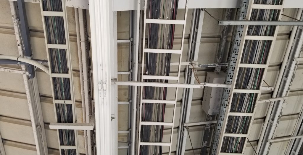 架台を設置して幹線を天井付近に敷設する工事です。